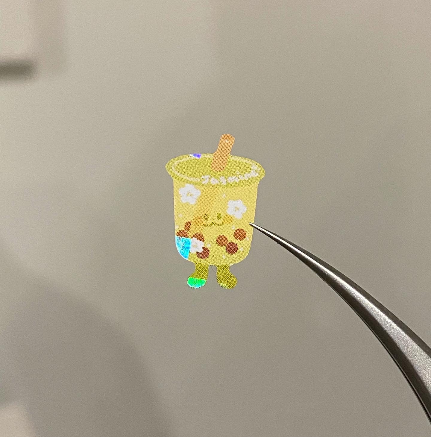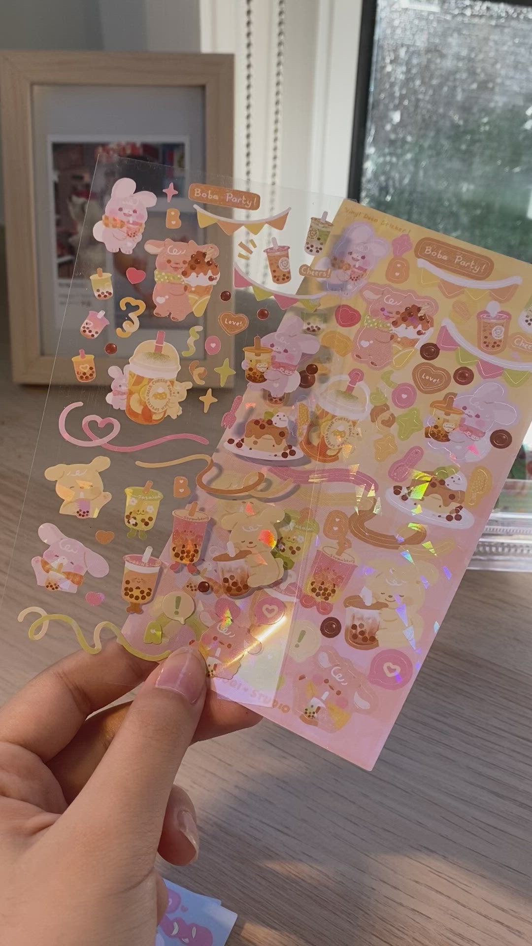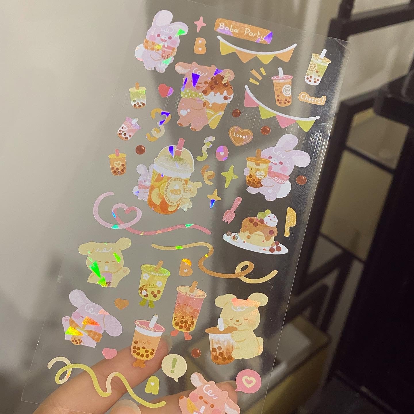 Boba themed vinyl deco stickers with a cracked glass holographic finish!