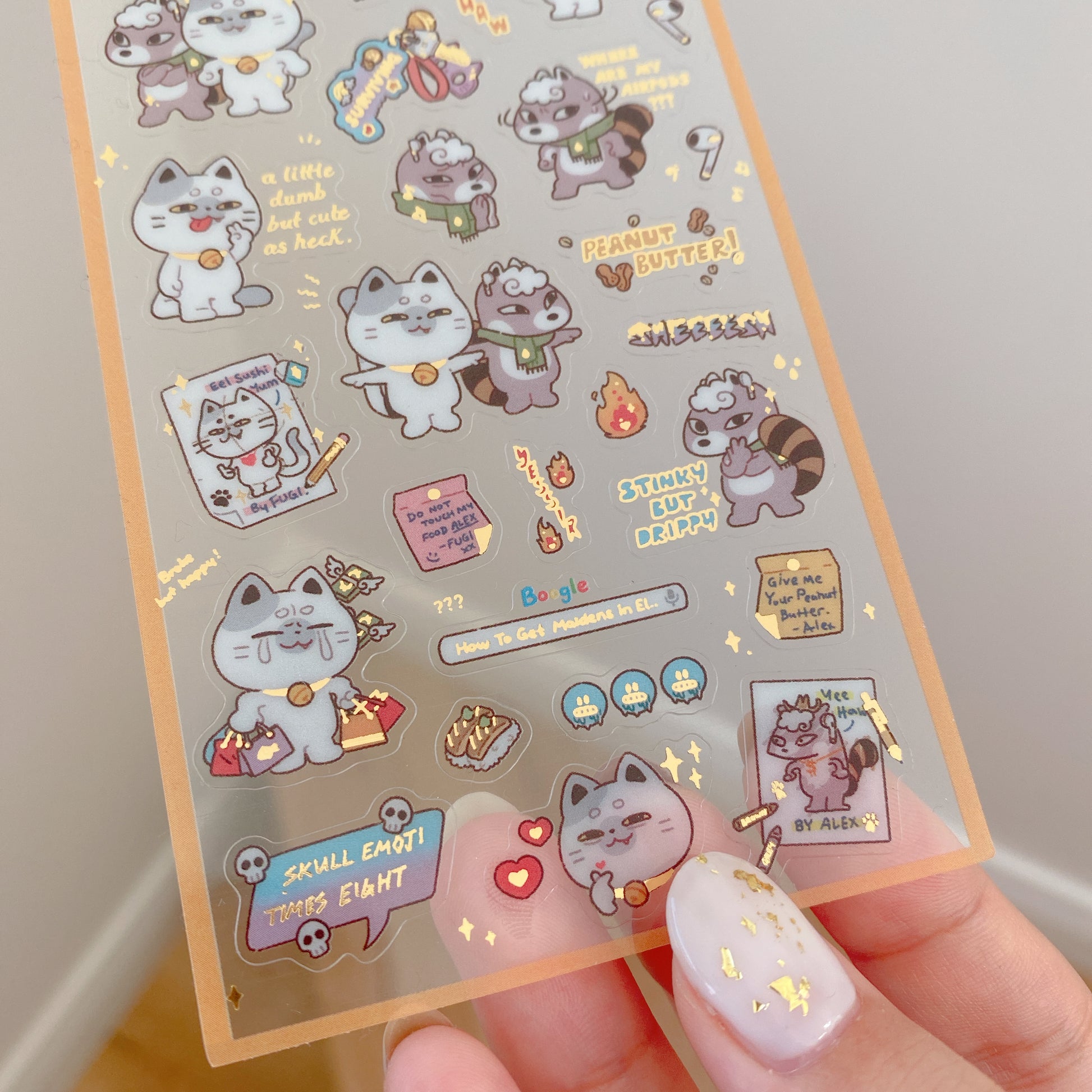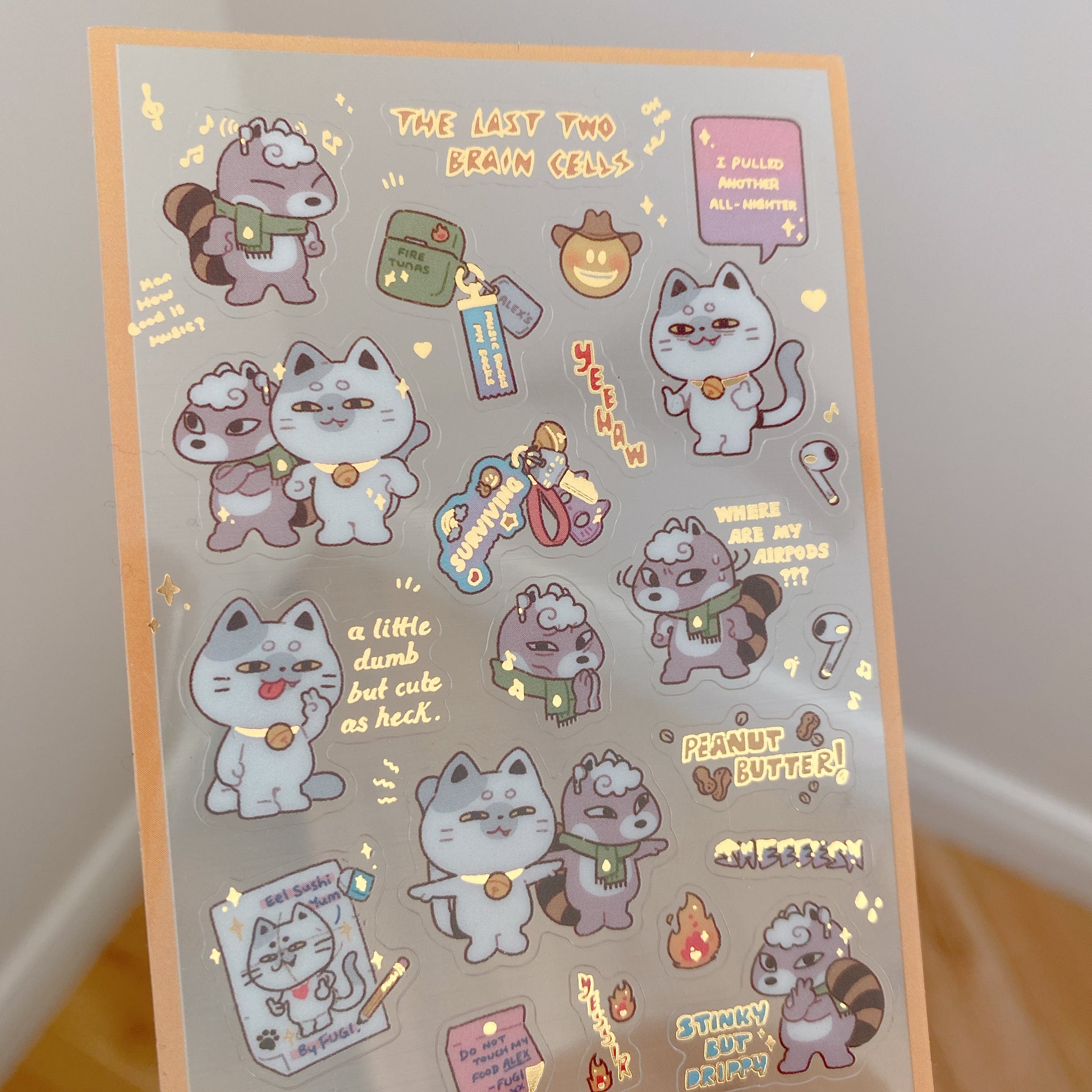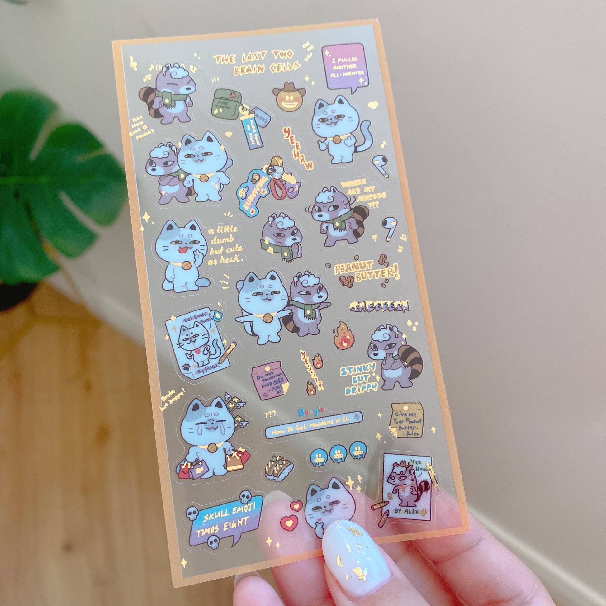 Special edition collaboration stickers made with Glossy clear vinyl and shiny gold foil details!