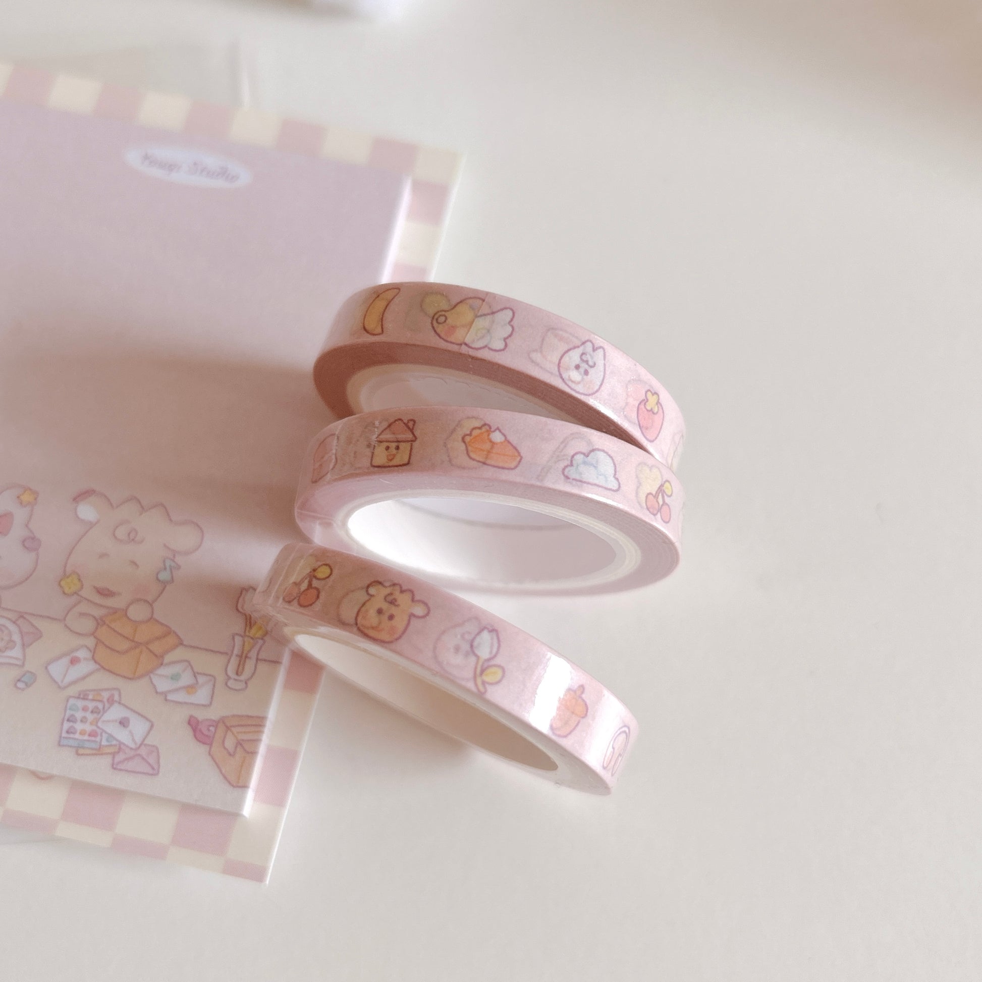 The cutest little pink washi tape for decorating anything! Featuring many loved items, foods and drinks! Will match my mossery cover design!