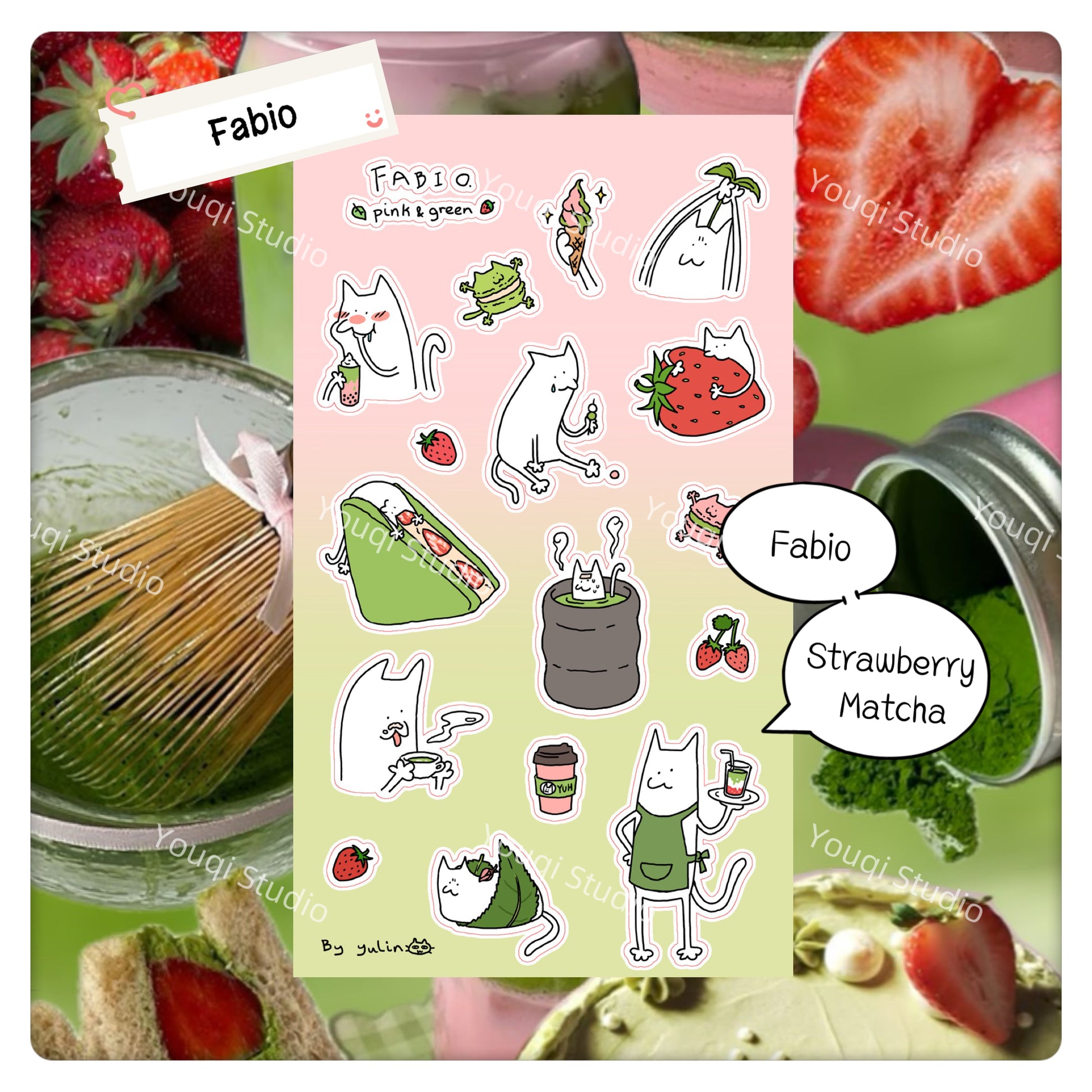 Printed on matte vinyl, strawberry matcha themed Fabio, as always, Fabio designs are limited edition