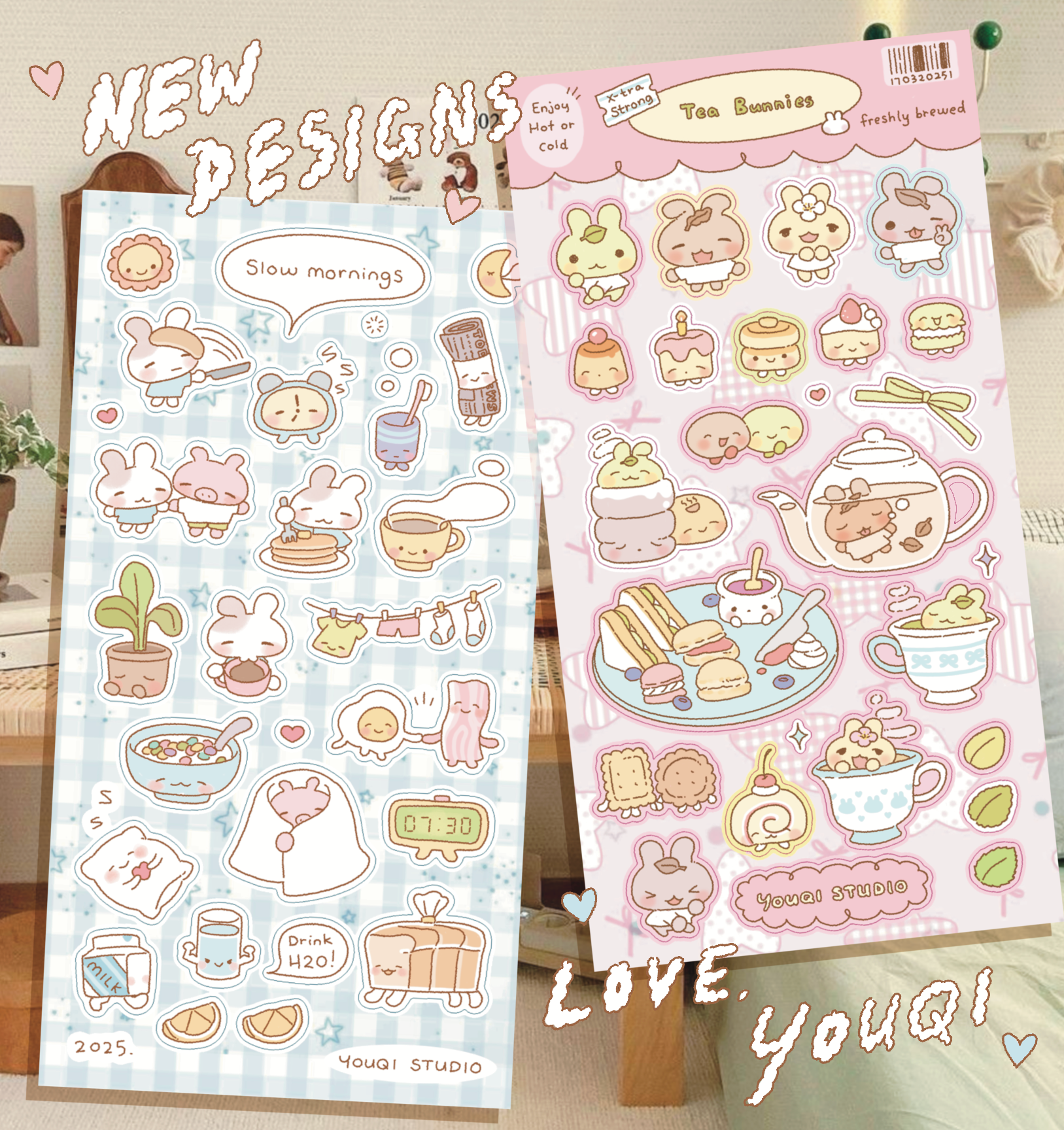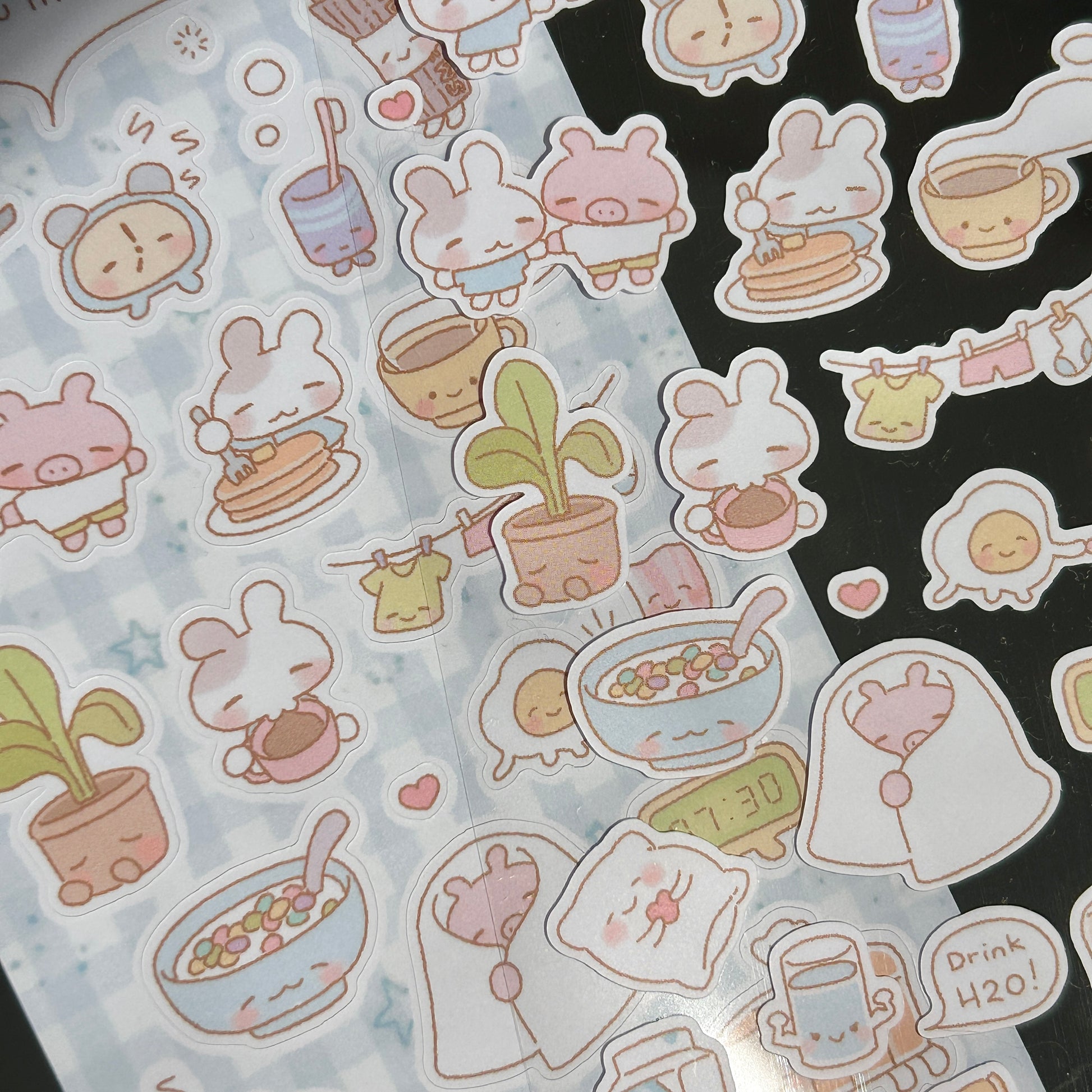 New matte vinyl stickers with a warm and fuzzy brekkie theme!